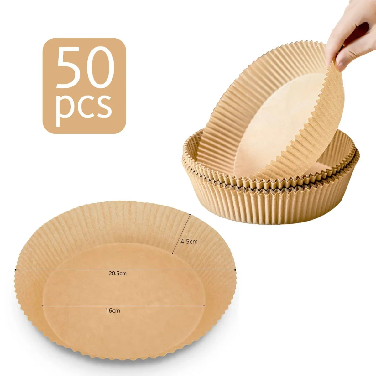 50PZ Carta Forno Per Friggitrice Ad Aria 205-160-45 mm Rotondi Carta Friggitrice Ad Aria Monouso Pergamena Antiaderente Non Sbiancata Impermeabile Resistente ad Alta Temperatura Carta Forno Fogli