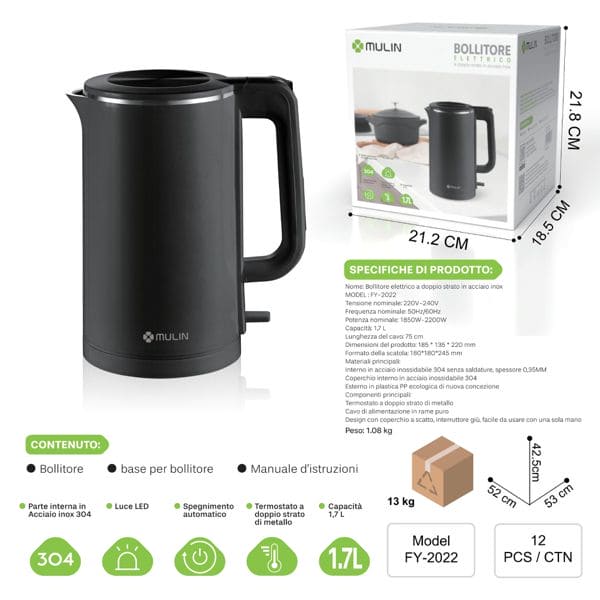 FY-2022 1.7L BOLLITORE ELETTRICO NERO