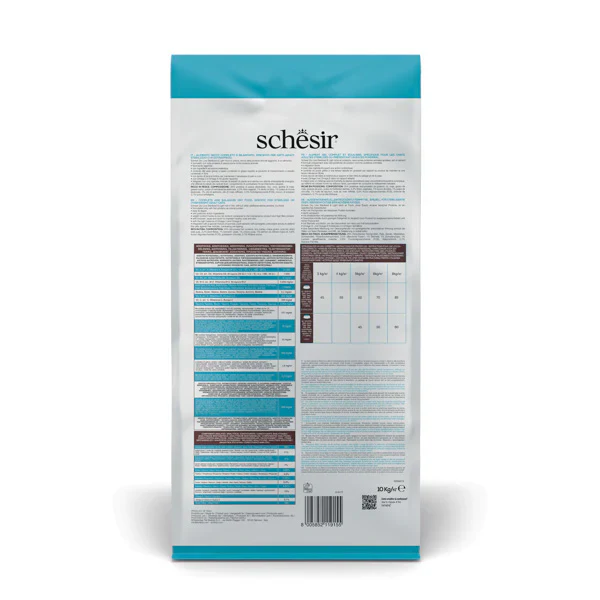 Perché scegliere Schesir Sterilized&Light Ricco in Pesce per il mio gatto sterilizzato? Questo prodotto è formulato specificamente per mantenere il peso forma dei gatti sterilizzati, grazie al suo basso contenuto di grassi ed elevato contenuto di fibre.