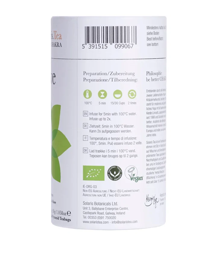 Scopri la Tisana 4° Chakra di Solaris Tea, una miscela biologica pensata per riequilibrare il tuo chakra del cuore (Anahata), promuovere l’amore incondizionato e favorire la serenità emotiva. Grazie alla combinazione di ingredienti naturali certificati, questa tisana ti avvolge con un abbraccio di benessere, creando un equilibrio tra corpo e mente.