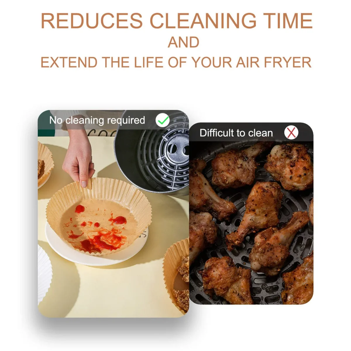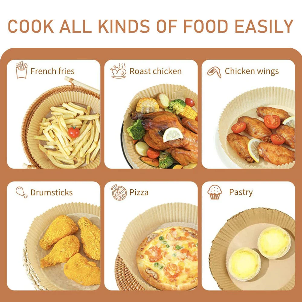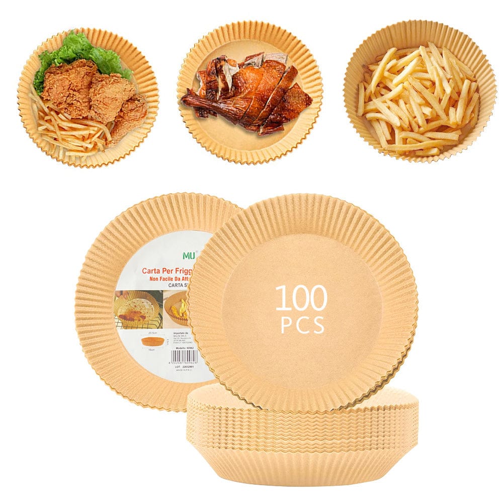 - 【Mantieni Pulita】: Le 50 fodere di carta monouse possono rendere facilmente ed efficacemente polita la friggitrice ad aria e come non è utilizzata. Sono indispensabili per quelli che odono la pulizia dopo la cottura.