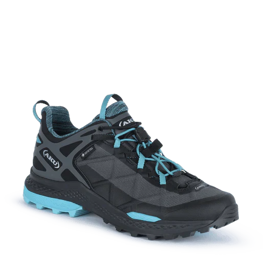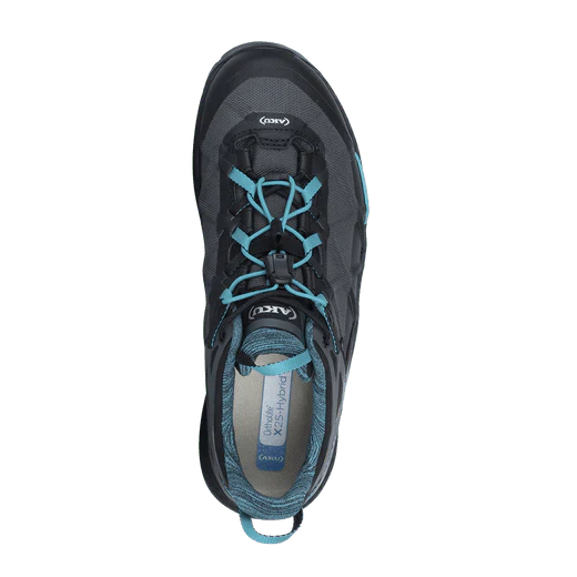 La tecnologia esclusiva AKU Dual Fit System (DFS), qui realizzata nella versione per lo speed hiking, consente di variare il grado di precisione della calzata agendo con semplicità sui due diversi sistemi di allacciatura. E’ costruita con la tecnologia AKU Elica Natural Stride System per favorire l’efficienza biodinamica.