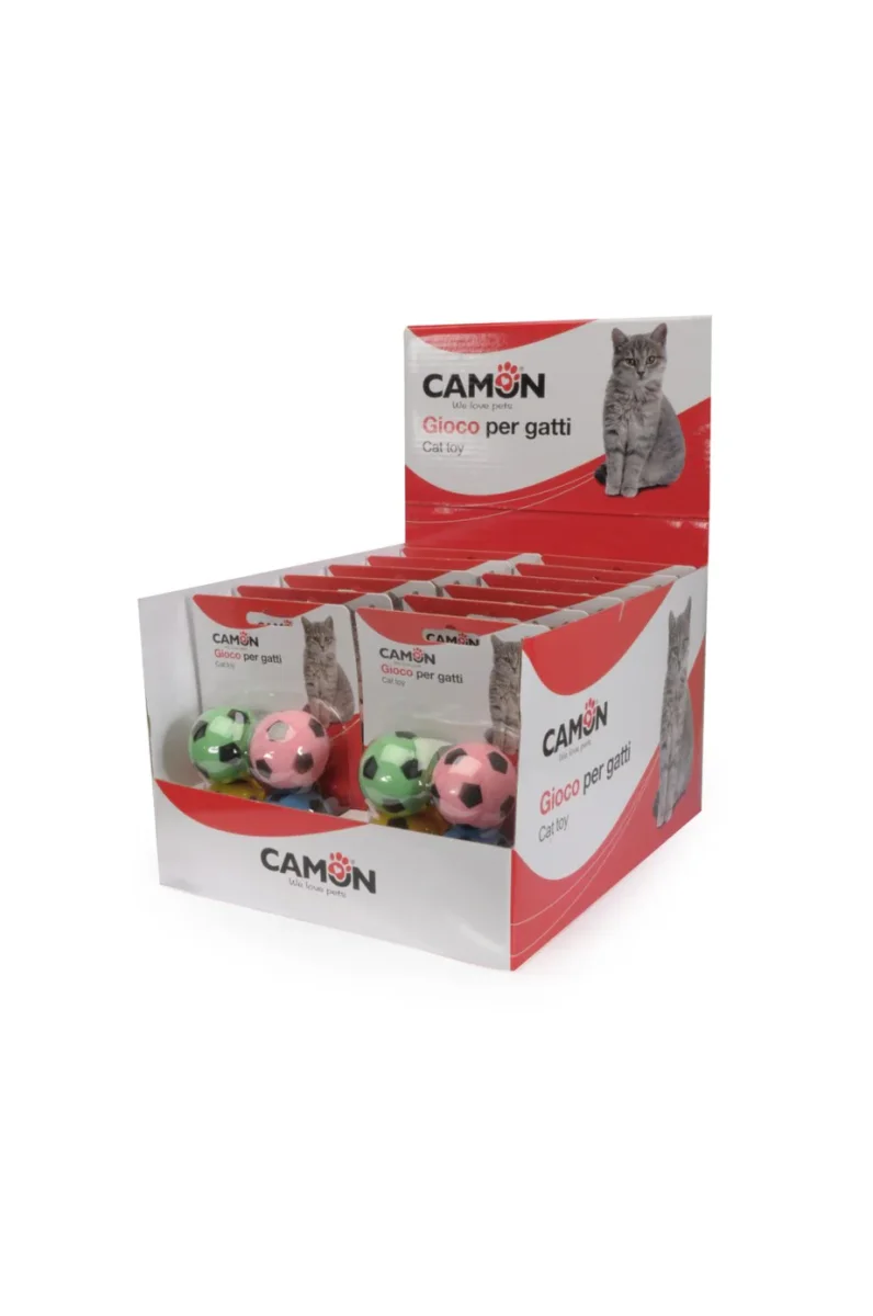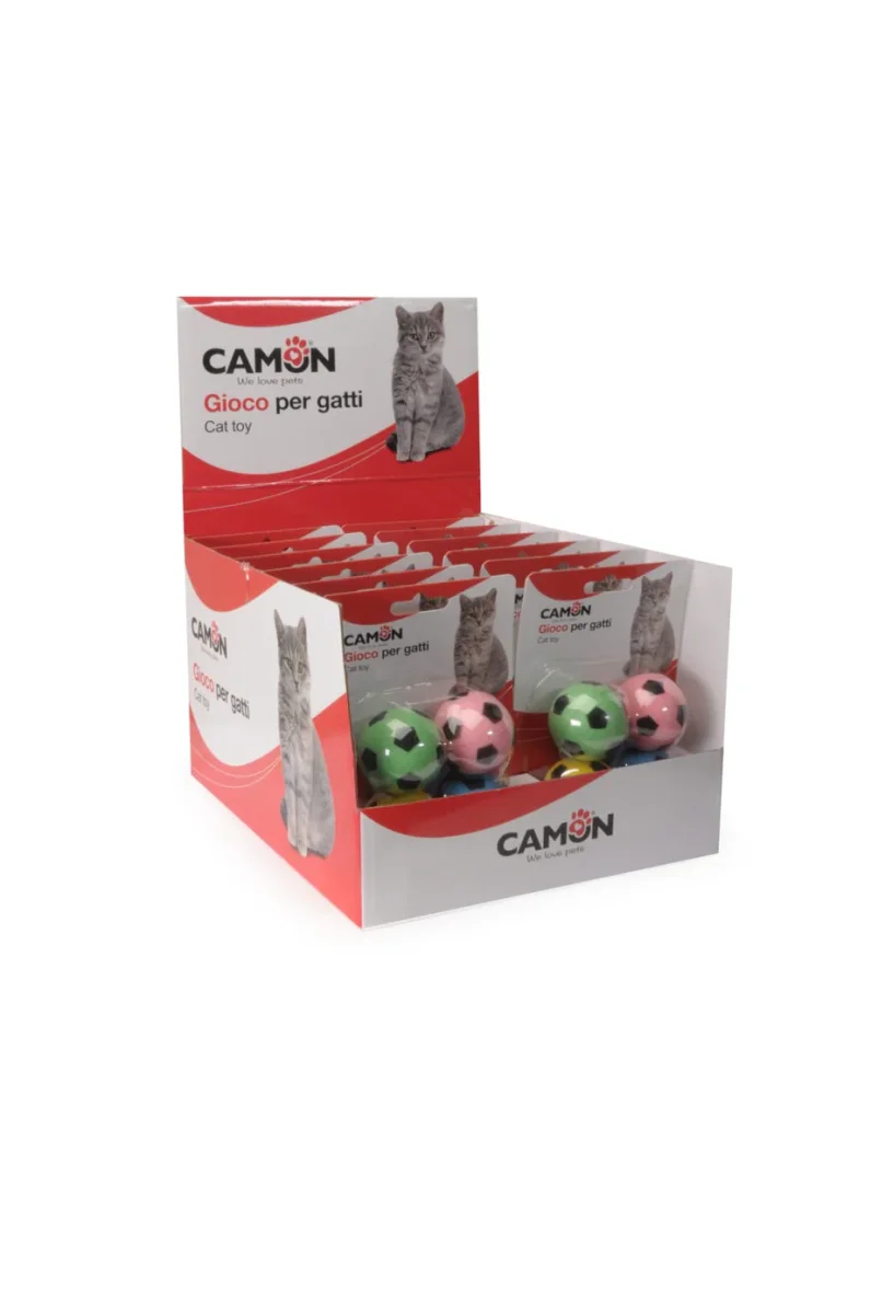 Set di palline leggere e resistenti, perfette per il gioco quotidiano del gatto. Ogni confezione include 4 palline in lattice morbido, dalla forma di mini palloni da calcio colorati, ideali per stimolare l’attività fisica e l’istinto predatorio.