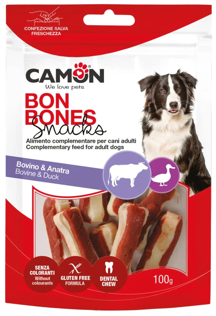 Camon Ossicini In Pelle Bovina Con Anatra Cane 100 G è uno snack pensato per la routine dei cani adulti che amano masticare. Si tratta di un alimento complementare masticabile per cani adulti, pratico da offrire come premio durante la giornata o come piccolo momento di gratificazione tra un pasto e l’altro. La presenza di pelle bovina e anatra lo rende una proposta gustosa, mentre la forma di ossicino aiuta a trasformare lo snack in un gesto semplice e piacevole. La confezione salva freschezza da 100 g è comoda da tenere in casa e utile per servire il prodotto con praticità ogni volta che vuoi concedere al tuo cane uno spuntino dedicato.