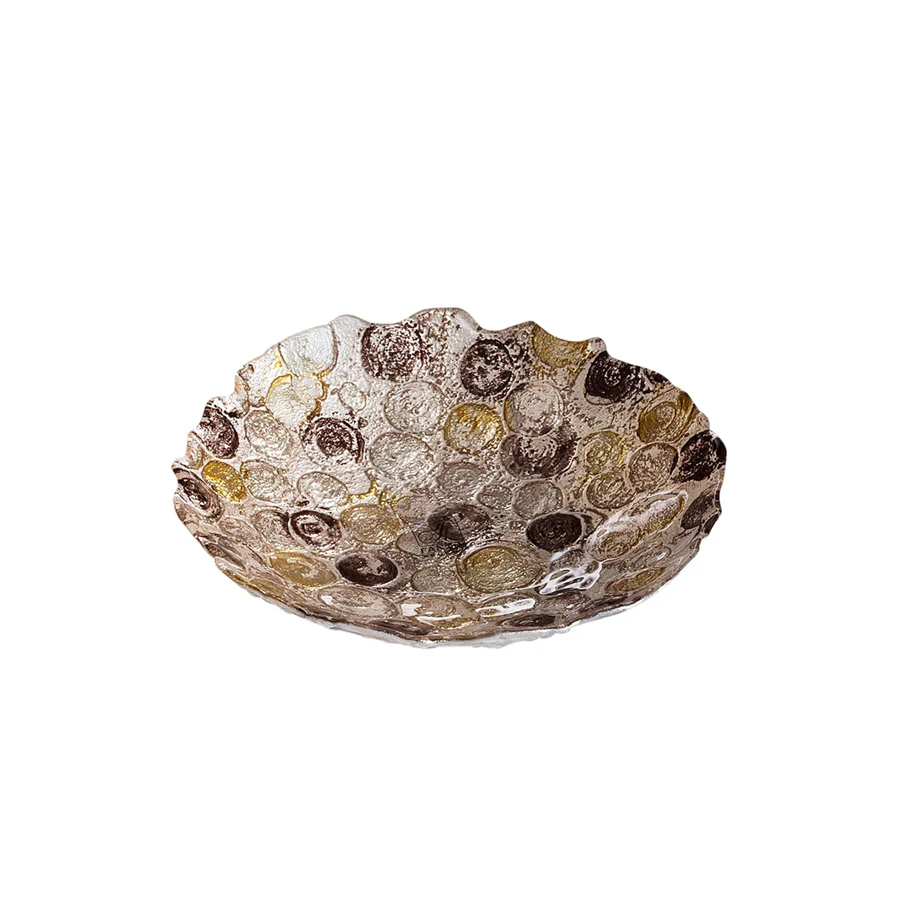 La versione smaltata del centrotavola lo rende adatto non solo come elemento decorativo, ma anche come contenitore per frutta, insalata o altri alimenti. La sua forma rotonda e generosa offre spazio sufficiente per presentare in modo elegante e invitante una varietà di piatti durante i pasti o le occasioni speciali.