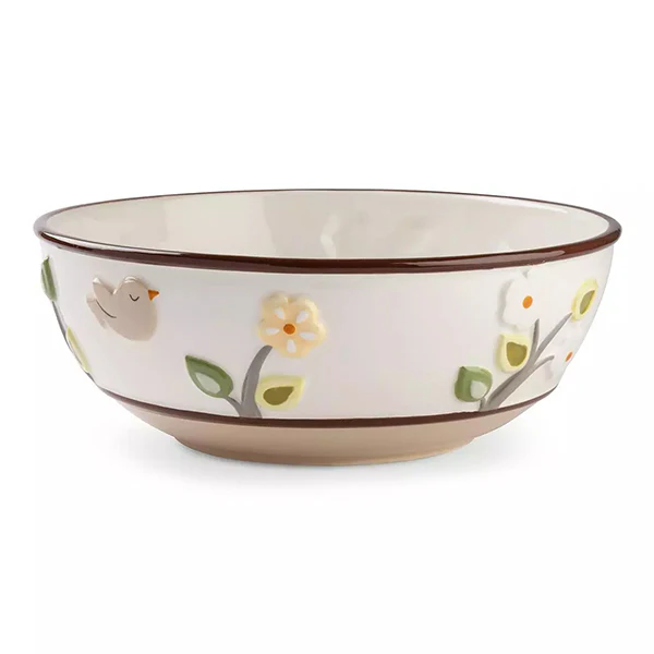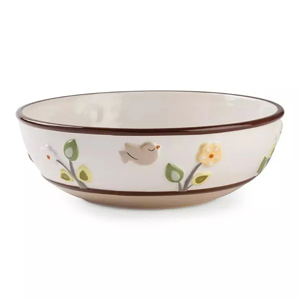 Disponibile in due dimensioni, con diametri di cm 30 o cm 25, puoi scegliere la dimensione che meglio si adatta alle tue esigenze e al tuo spazio sulla tavola. Entrambe le dimensioni offrono abbastanza capacità per contenere una quantità generosa di cibo, mentre il design decorato con un tralcio di piccoli fiori e graziosi uccellini aggiunge un tocco di charme naturale alla tua tavola.