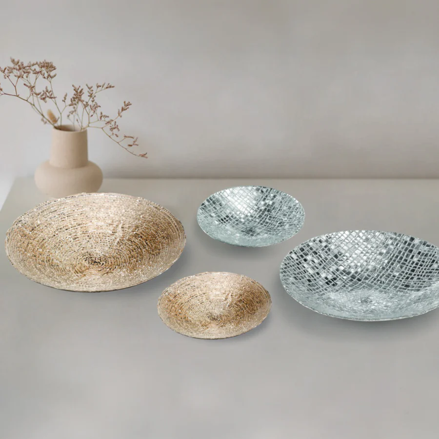 La finitura argento esalta la trasparenza del vetro, conferendo alla ciotola una luminosità unica che cattura l’attenzione e valorizza qualsiasi contenuto, dal cibo agli oggetti decorativi.