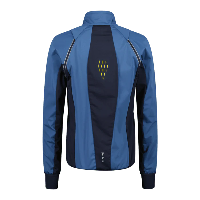 Maniche e fianchi sono in tessuto in light softshell accoppiato con la membrana impermeabile Clima Protect in grado di proteggere da vento e intemperie senza compromettere la traspirabilità. Sulla schiena è presente un inserto in mesh che favorisce la traspirabilità. All’altezza delle spalle sono state posizionate due zip che consentono di staccare le maniche della giacca e trasformarla comodamente in un gilet. I dettagli reflective rendono questa giacca ideale anche per utilizzi serali.