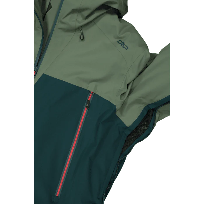 Diversi dettagli aumentano la tecnicità di questo capo, come le cuciture totalmente nastrate, Il cappuccio fisso ergonomico integrato frontalmente, la zip frontale con patta antivento e antisfregamento. All’interno ghetta antineve fissa. Il capo è completato dai polsini regolabili con velcro e polsino interno in lycra con apertura per il pollice, fondo regolabile e due tasche con zip.