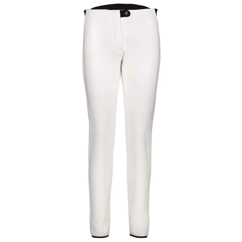 Pantaloni in softshell dal taglio femminile: gamba stretta, bottone a pressione personalizzato, senza tasche. Un pantalone adatto per sci e outdoor, che si contraddistingue per il suo fit asciutto e per le sue caratteristiche tecniche, le sue capacità isolanti e l’impermeabilità e la traspirabilità.