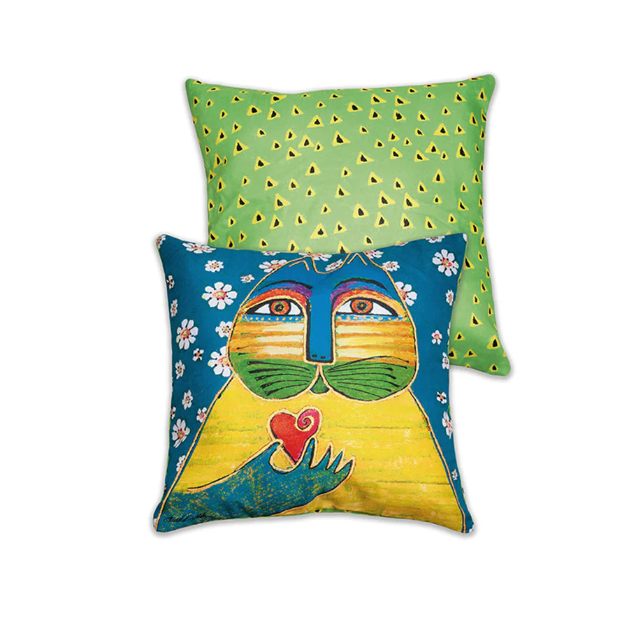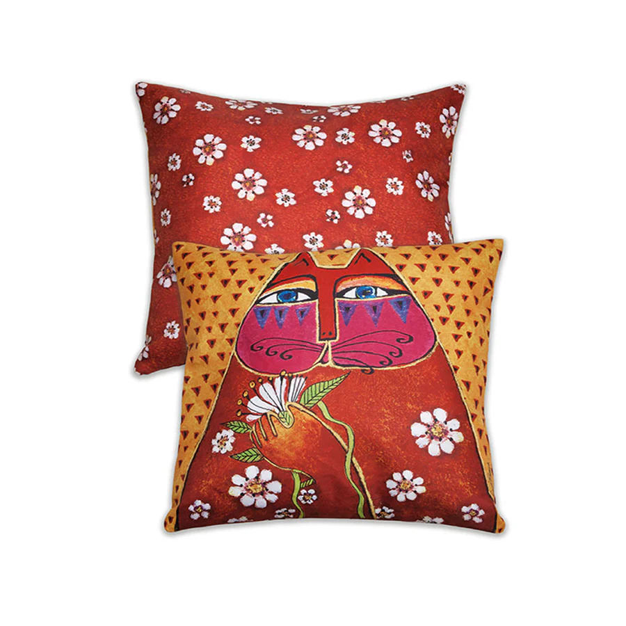 Questi cuscini sono una celebrazione dell’arte senza tempo di Laurel Burch, un’artista che ha saputo unire culture e raccontare storie attraverso le sue opere. I suoi gatti, insieme ad altre icone del suo repertorio come cavalli, farfalle e fiori, sono rappresentati su questi cuscini con una maestria che cattura l’essenza del suo stile unico e riconoscibile.