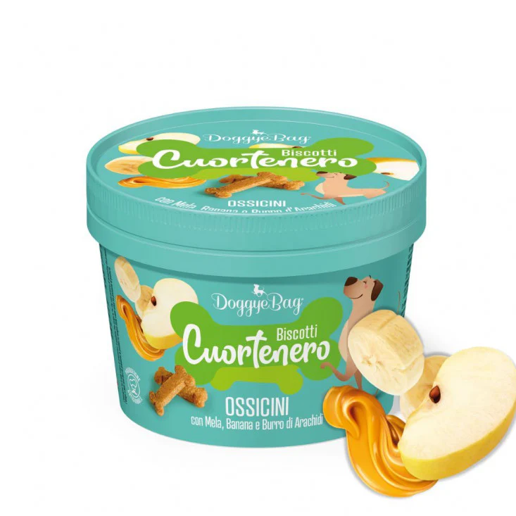 DoggyeBag Cuortenero Ossicini Mela Banana e Burro di Arachidi 150 g