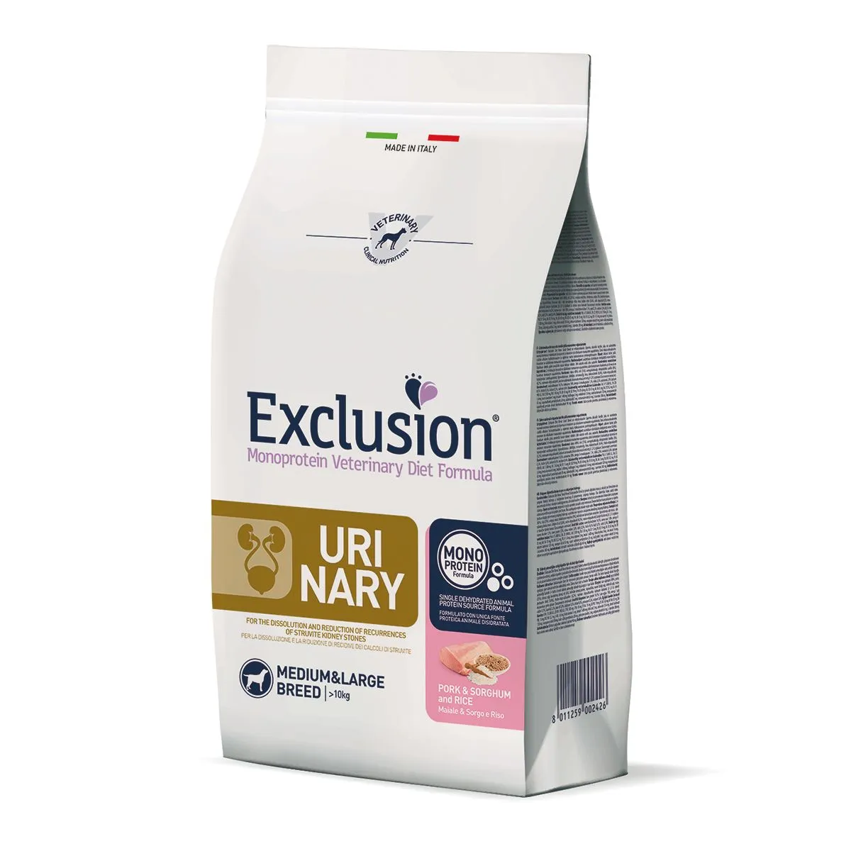 Le crocchette Exclusion Urinary Medium&Large Breed sono un alimento completo dietetico progettato per i cani di taglia media e grande che soffrono di calcoli di struvite. La formula avanzata e bilanciata supporta la dissoluzione dei calcoli di struvite già presenti e aiuta a ridurre il rischio di recidive. Utilizzando una singola fonte proteica di maiale e sorgo come principale fonte di carboidrati, questo cibo per cani garantisce ingredienti di alta qualità e un’efficace soluzione nutrizionale. L’alimento presenta una bassa concentrazione di magnesio e un ridotto tenore di proteine per migliorare la salute urinaria del tuo cane.