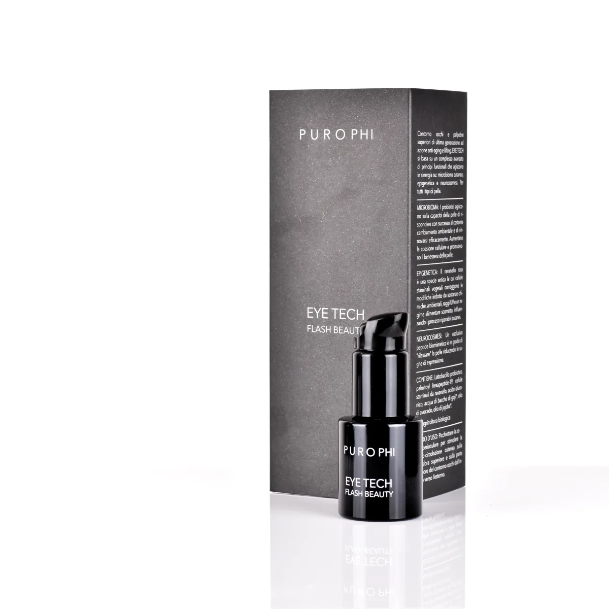 Eye Tech si basa su un complesso avanzato di principi funzionali che agiscono in sinergia su microbioma* cutaneo, epigenetica* e neurocosmesi. Per tutti i tipi di pelle.