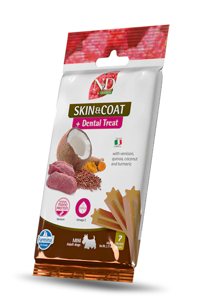 Snack funzionale formulato per favorire la salute di cute e mantello nei cani adulti di taglia piccola. Grazie all’aggiunta di quinoa, curcuma e cocco, offre benefici nutrizionali mirati, con ingredienti a supporto del benessere cutaneo e del sistema immunitario.
