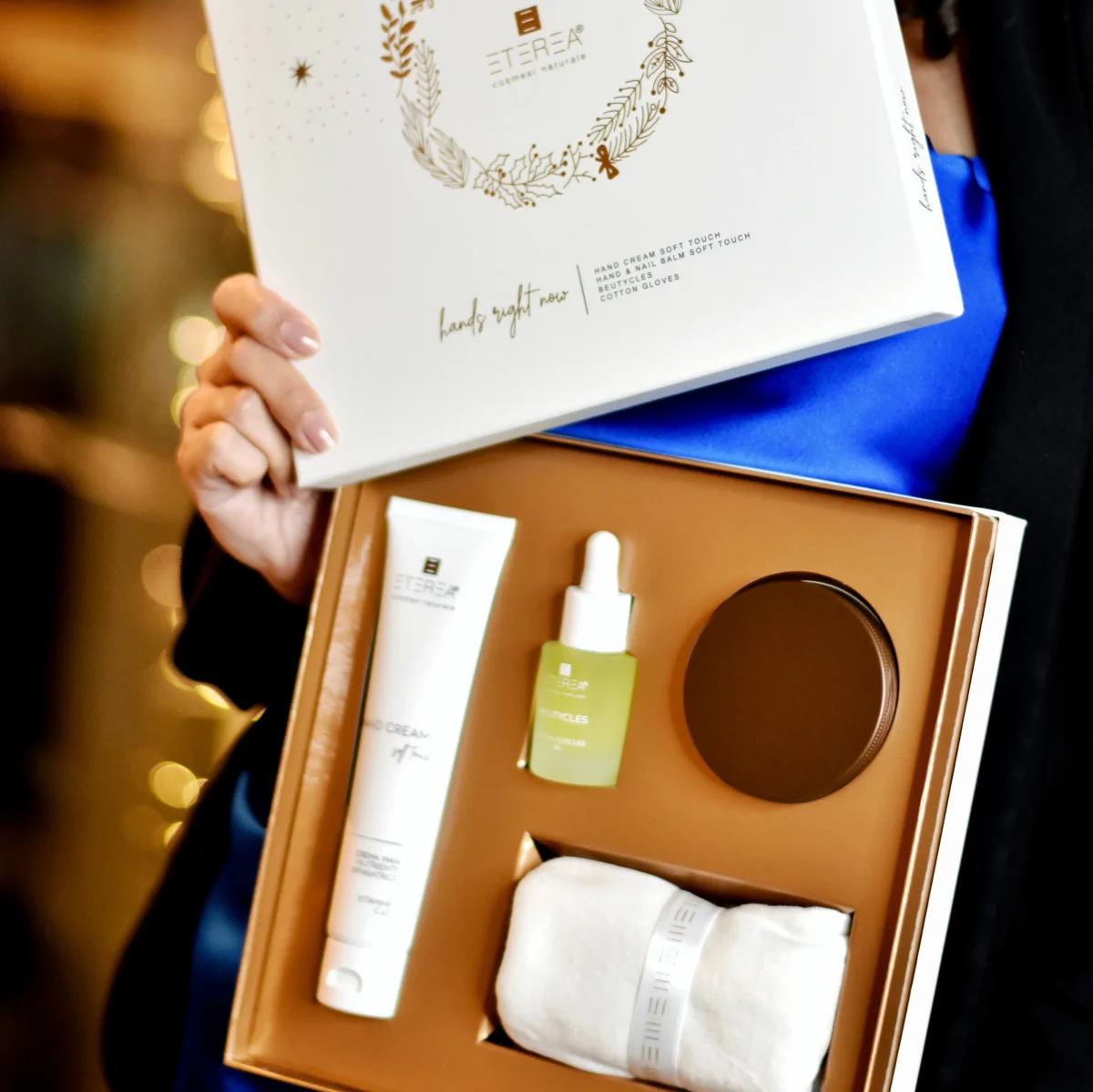 rappresenta un rituale completo per prendersi cura di mani e unghie. Racchiude al suo interno un Olio per cuticole e unghie in edizione limitata, la nostra Crema mani, il Balsamo per mani e unghie e due guanti in cotone. Questi ultimi, anch’essi in limited edition, sono perfetti per effettuare impacchi idratanti e nutrienti.