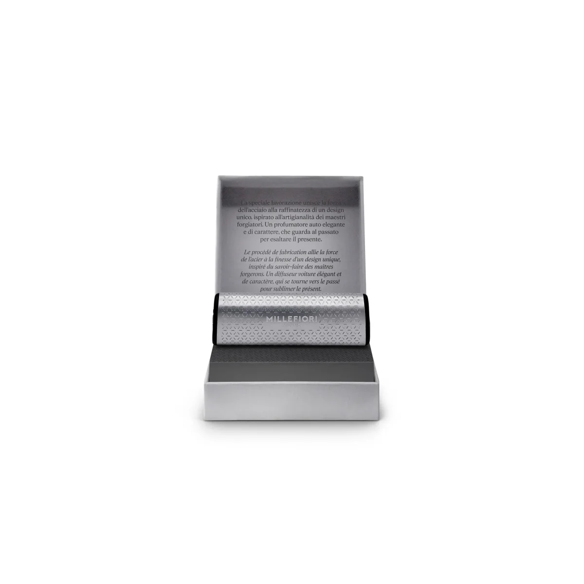 Il profumatore per auto Steel unisce la forza dell’acciaio alla raffinatezza di un design unico, ispirato all’artigianalità dei maestri forgiatori. Un accessorio elegante e di carattere, che diffonde nell’abitacolo le fragranze Millefiori Milano con discrezione.