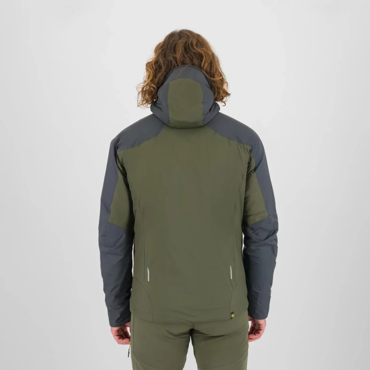 Realizzata con costruzione ibrida il tessuto K-Dry regala a questa giacca un’impermeabilità pari a 20.000 colonne d’acqua e 70.000g/m2/24h di traspirazione mentre inserti in tessuto Thermo Fleece, nel cappuccio, sui polsini al fondo manica, all’interno fondo manica e nell’interno schiena donano comfort e termicità. Termicità garantita, principalmente, dall’imbottitura in Primaloft® Silver Active100 su maniche e cappuccio mentre da 130 grammi sul resto del capo. Un concentrato di tecnologia in soli 650 grammi di giacca, veloce da riporre nello zaino quando non la si utilizza grazie alla sua comprimibilità.