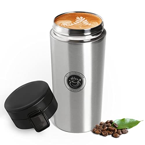 - 【Caffè caldo sempre a portata di mano】 Mantiene caldissima la bevanda. Tazza termica viaggio comodissima in auto/ufficio / borsa /macchina. Comodo utilizzare una sola mano per bere.