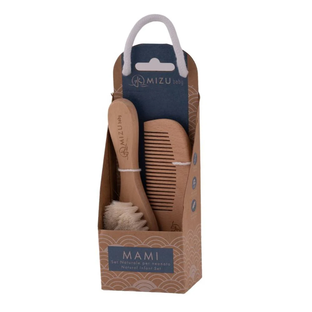 Un set essenziale e delicato pensato per la routine di benessere quotidiana del tuo bebè. MAMI HAIR SET include una spazzola naturale ultra-morbida e un pettine ergonomico con punte arrotondate: tutto ciò che serve per prendersi cura della cute e dei primi capelli con la massima dolcezza.
