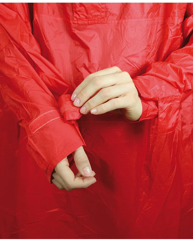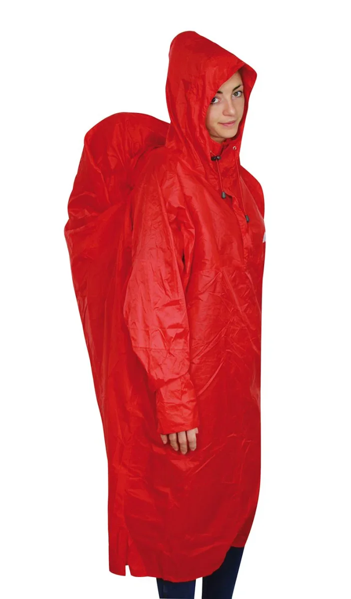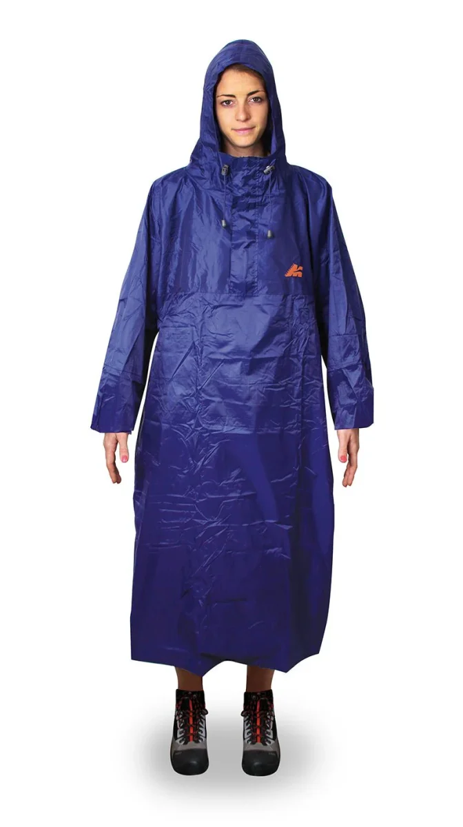 Poncho super leggero, impermeabile, termosaldato su tutte le cuciture. L’impermeabilità di questo tessuto è di 3.000 mm Schmerber: significa che resiste alla pressione esercitata da 3.000 mm di colonna d’acqua (test standard ISO). E’ dotato di cappuccio con frontino ed elastico di chiusura e sul retro di tasca a scomparsa copri zaino. Ha velcro sulle maniche per una miglior regolazione ed è richiudibile in un comodo sacchetto. pesi: XS: 450 gr M: 500 gr XL: 550 gr