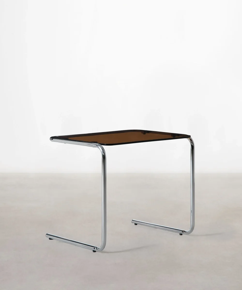 Nuestra Mesa auxiliar de metal y cristal Bonet es una pieza elegante y versátil que añadirá un toque de sofisticación a cualquier espacio. Fabricada con acero inoxidable cromado, esta mesa auxiliar combina funcionalidad y estilo de manera armoniosa que asegura estabilidad y estilo contemporáneo.