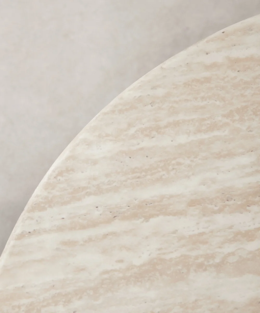 La mesa auxiliar Miro combina un diseño sencillo con un acabado elegante tipo travertino, ideal para añadir un toque natural a cualquier rincón. Su forma compacta y su estilo limpio la hacen perfecta para acompañar sofás, sillones o como apoyo junto a la cama.