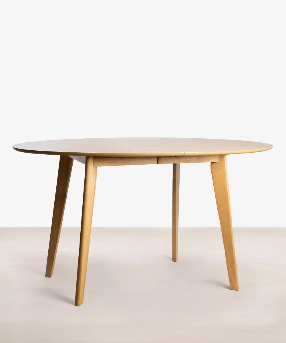 ¡Tenemos justo lo que necesitas! Con un diámetro de 150 cm y con extensión (que debe guardar aparte), la mesa se hace extensible hasta 200 cm. Tendrás espacio suficiente para todos ya que esta mesa puede acomodar de 4 a 6 invitados cómodamente.