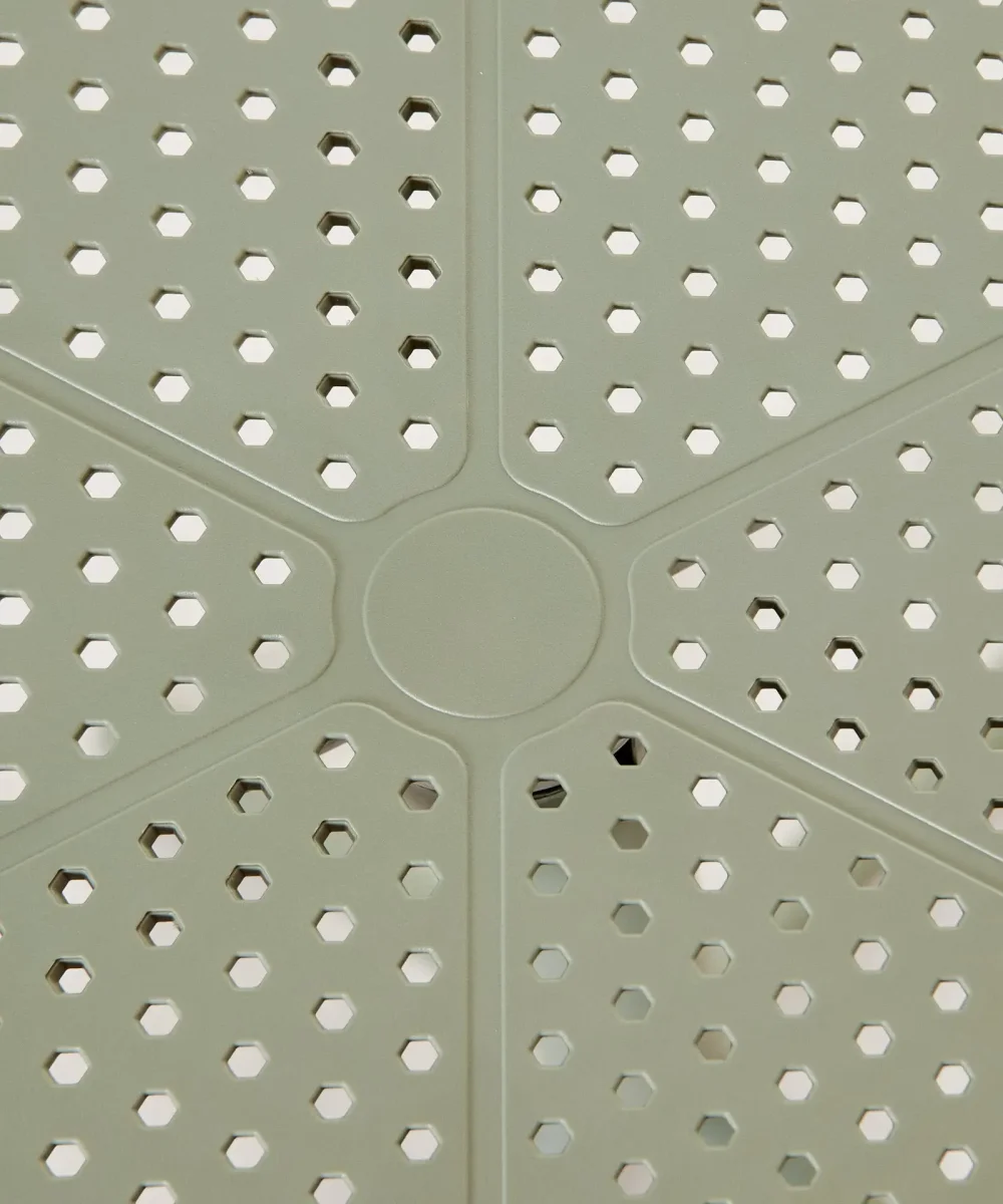 El tablero perforado no solo es un detalle estético, sino que también facilita el drenaje, evitando acumulaciones de agua en exteriores. Su base con cuatro patas proporciona un soporte firme que permite su uso en diferentes superficies..