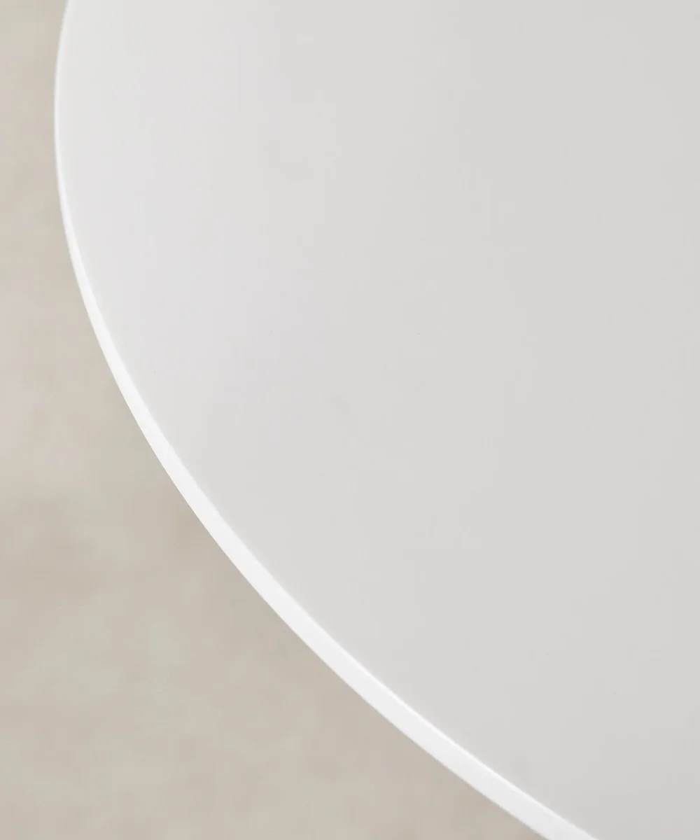 Fabricada en metal y recubierta en fibra de vidrio lacada en blanco y un sobre de acabado uniforme y brillante. Es ideal para comedores, cocinas o espacios de estilo contemporáneo. Su superficie redonda favorece la conversación y crea una atmósfera acogedora y equilibrada.