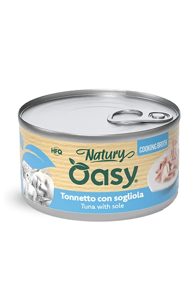 Oasy Gatto Natury Cooking Broth Tonnetto con Sogliola è un alimento complementare per gatti adulti, progettato per offrire gusto, leggerezza e idratazione in un’unica porzione. La ricetta combina tonnetto (60 %) con una quota di sogliola (5 %), riso (1 %) e amido modificato di tapioca (1,45 %), tutto immerso in un brodo naturale che valorizza l’aroma del pesce. La formula è priva di coloranti, aromi e conservanti artificiali aggiunti e punta sulla semplicità e naturalità degli ingredienti. Il formato 85 g è ideale per servire un pasto leggero oppure integrarlo in una dieta mista con alimenti completi.