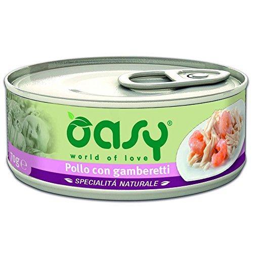 Un pasto ricco di gusto e semplicità per i gatti più esigenti: OASY WET CAT Specialità Naturale Pollo con Gamberetti è un alimento umido in lattina da 70g preparato con ingredienti 100% naturali e cotti delicatamente per preservarne il gusto e il valore nutrizionale. La ricetta prevede pollo di alta qualità, leggero e altamente digeribile, unito ai gamberetti, fonte naturale di proteine nobili e Omega 3, ottimi per supportare la salute della pelle, del pelo e del sistema immunitario.