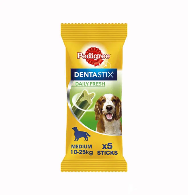 Mantieni l’alito fresco e i denti sani del tuo cane con Pedigree Daily Fresh 5 Sticks. Ideale per cani di taglia media, questo snack è studiato per supportare l’igiene orale del tuo amico a quattro zampe. Grazie alla sua formula specifica, aiuta a ridurre l’accumulo di placca e tartaro, contribuendo a un sorriso più sano e un alito fresco ogni giorno.