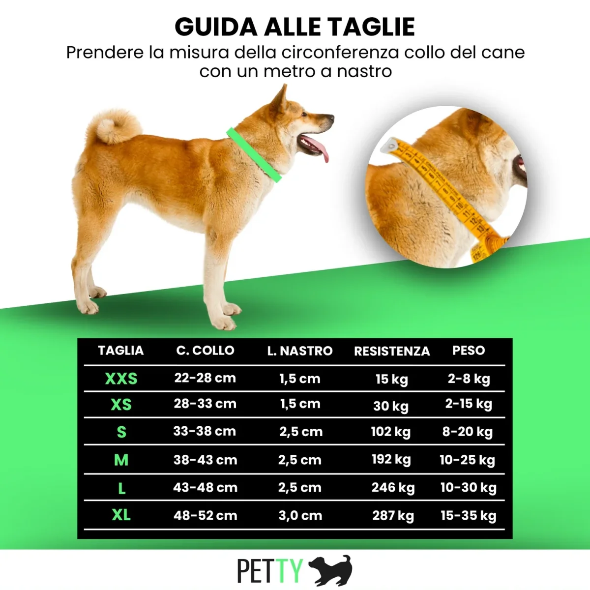 Ideale per cani taglia media-grande da 10 a 30kg con circonferenza collo 43-48cm. Perfetto per razze come Labrador, Golden Retriever, Boxer, Setter, Dalmata.
