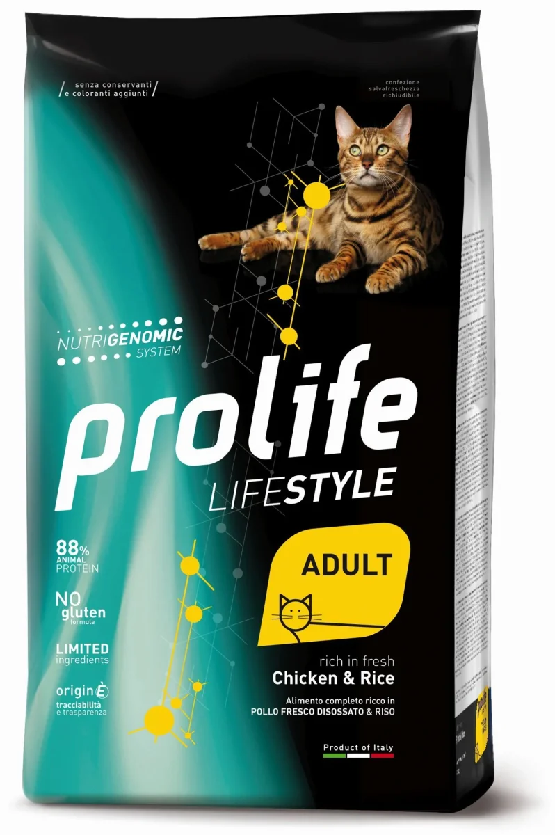 Prolife Adult Pollo e Riso è un alimento completo ricco di carne fresca di pollo e riso per il gatto adulto a partire da 12 mesi formulato in base alle specifiche esigenze nutrizionali. L’inclusione di Carne Fresca di Pollo lo rende digeribile e appetibile grazie all’elevata biodisponibilità delle proteine che apporta. L’integrazione di vitamine e minerali svolge inoltre un’azione antiossidante, aiutando a contrastare i radicali liberi, per mantenere una condizione di benessere dell’animale.