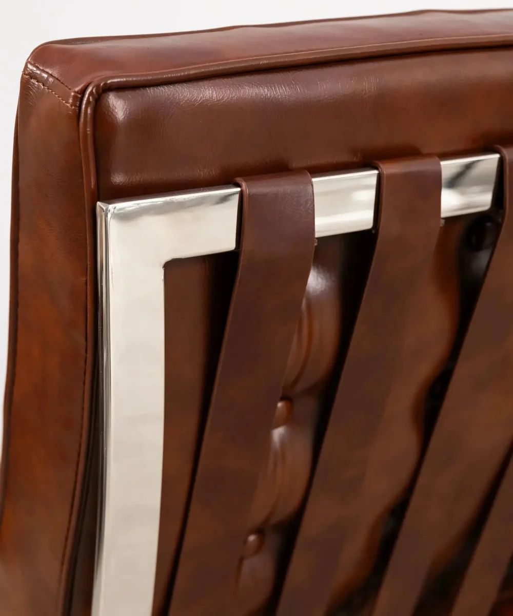 La tapicería es polipiel resistente de máxima calidad. Los botones están cosidos a mano con la técnica original.