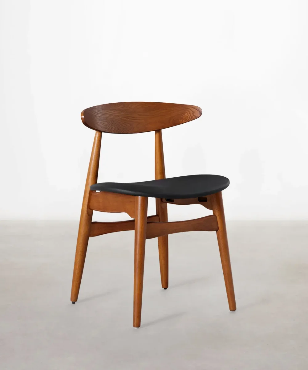 Fabricadas en madera maciza de roble con un acolchado asiento disponible en diferentes materiales; PU en la mayoría de sus variantes o Tela en en caso del tapizado blanco.