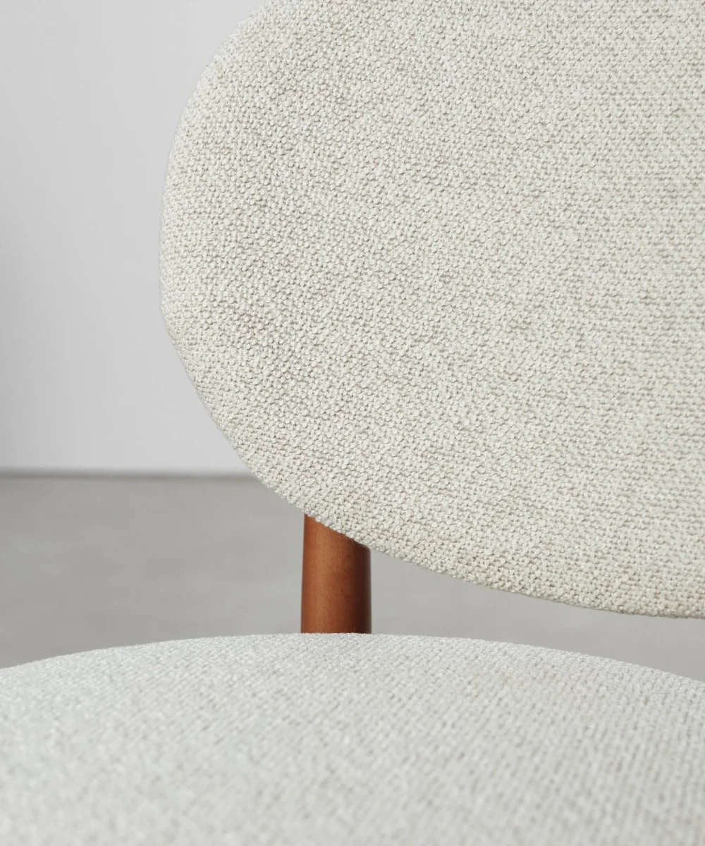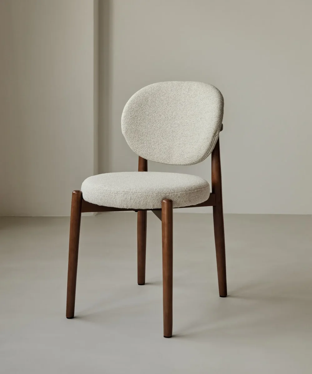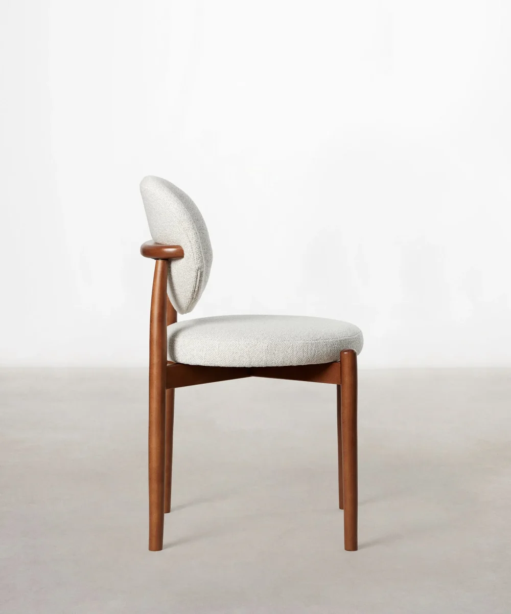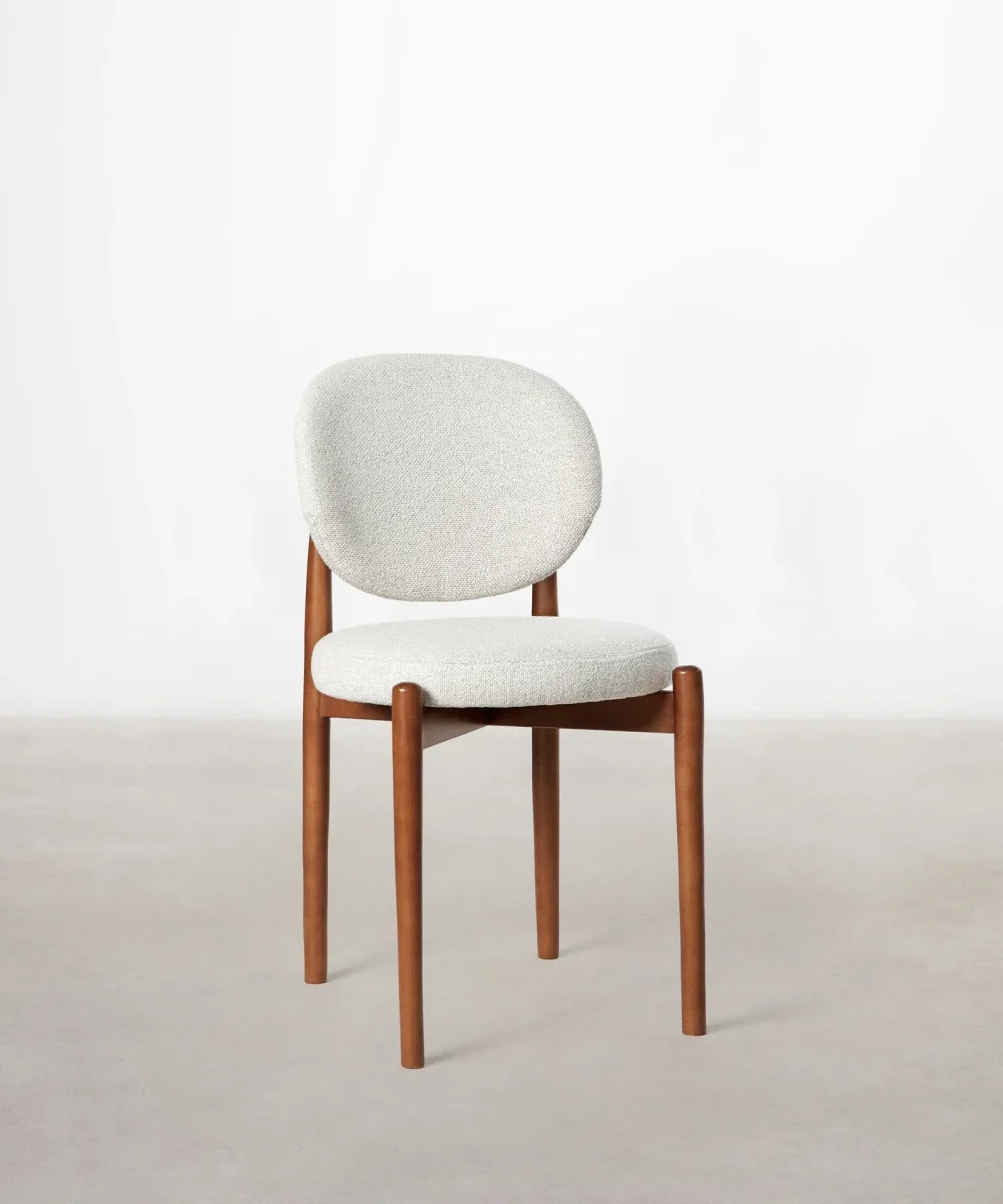 La estructura está fabricada en madera, aportando un toque natural y equilibrado que encaja muy bien en espacios modernos, nórdicos o mediterráneos. Sus formas redondeadas y su perfil ligero hacen que sea una pieza fácil de integrar en comedores, dormitorios o incluso rincones de lectura.