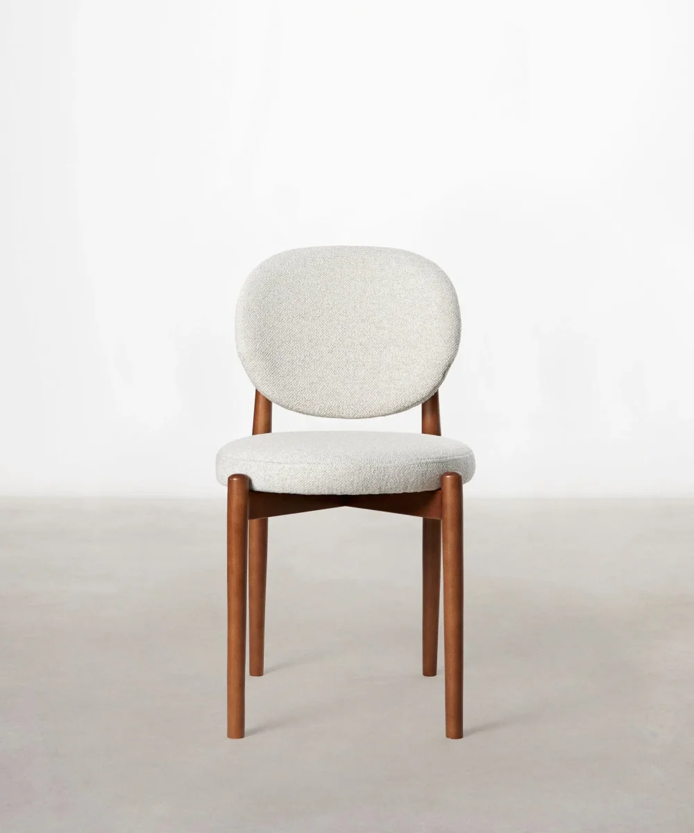 La silla Sonna combina un diseño suave y acogedor con una estructura resistente y de líneas simples. Su asiento y respaldo, tapizados en tejido cálido y agradable, ofrecen una comodidad excelente para el día a día.