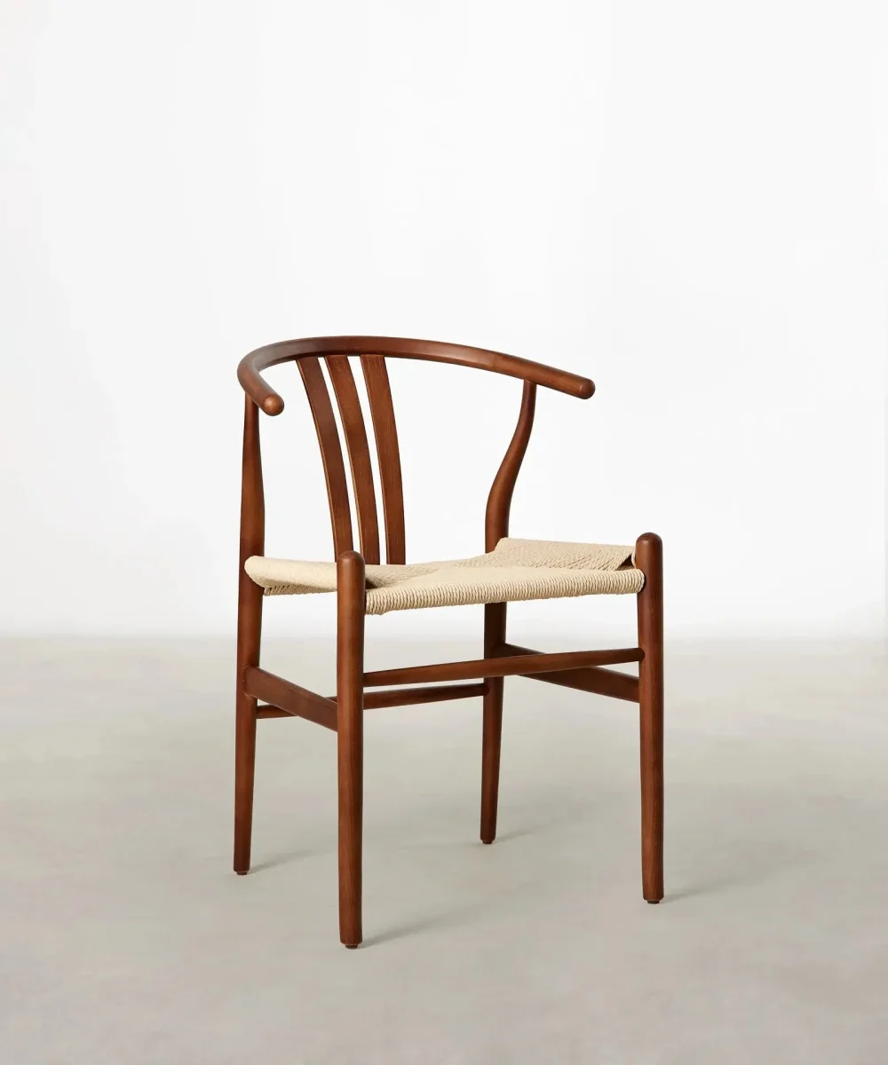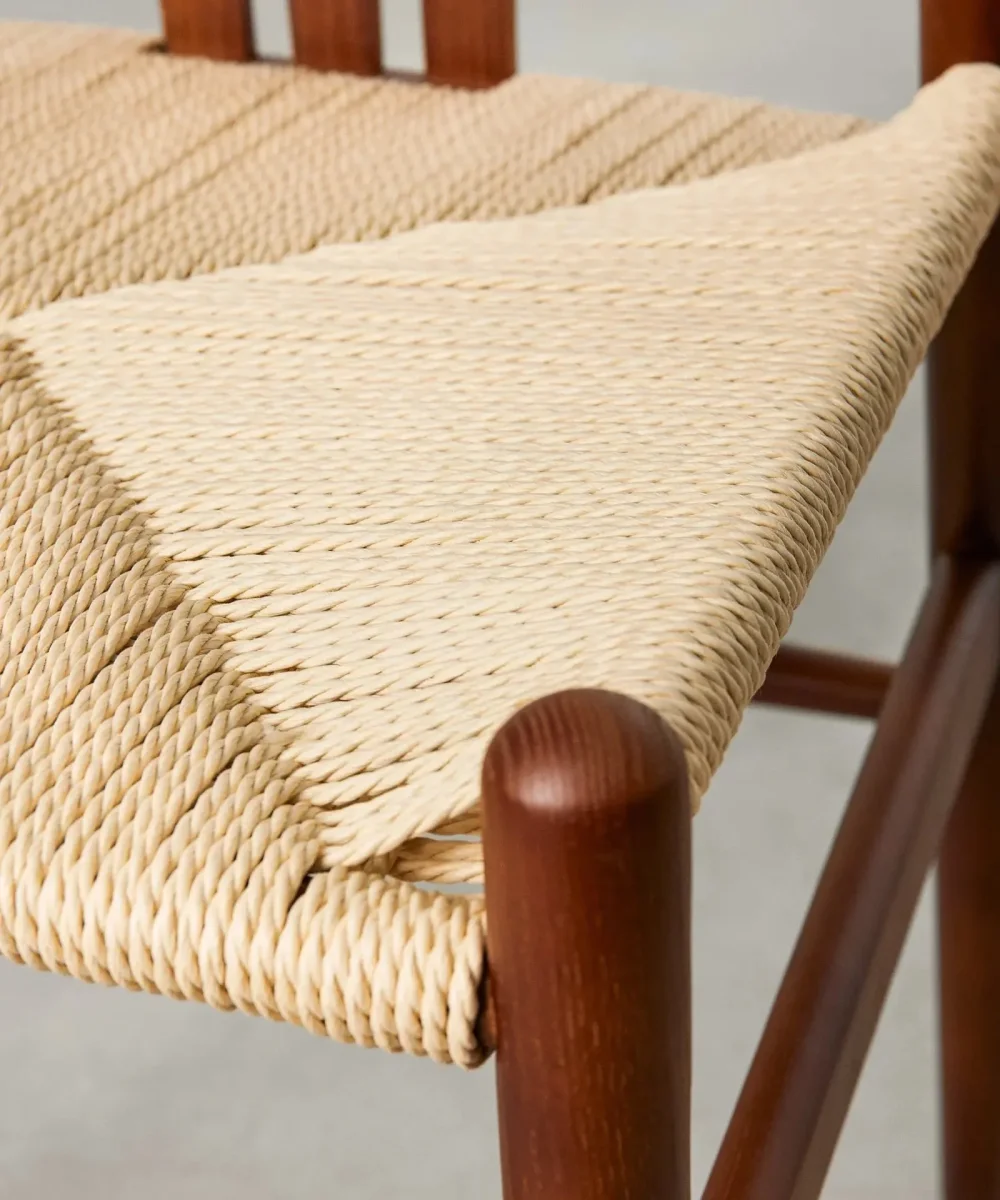 Su estilo nórdico y rústico te proporcionará una calidez y confort inigualable. Esta silla está formada por una estructura fabricada en madera de fresno sostenible y un asiento elaborado con cuerda ecológica en fibra natural.