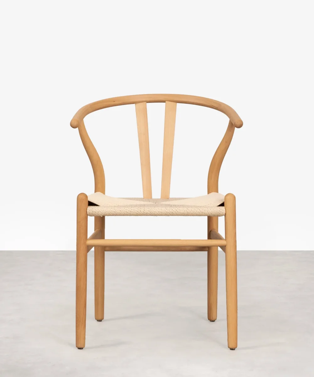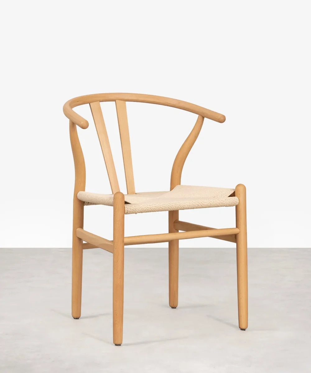 Su estilo nórdico y rústico te proporcionará una calidez y confort inigualable. Esta silla está formada por una estructura fabricada en madera de haya sostenible y un asiento elaborado con cuerda ecológica en fibra natural.