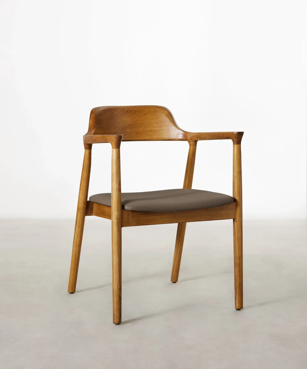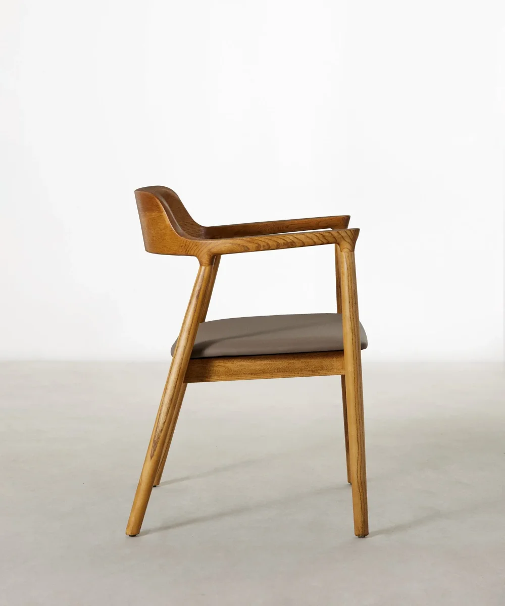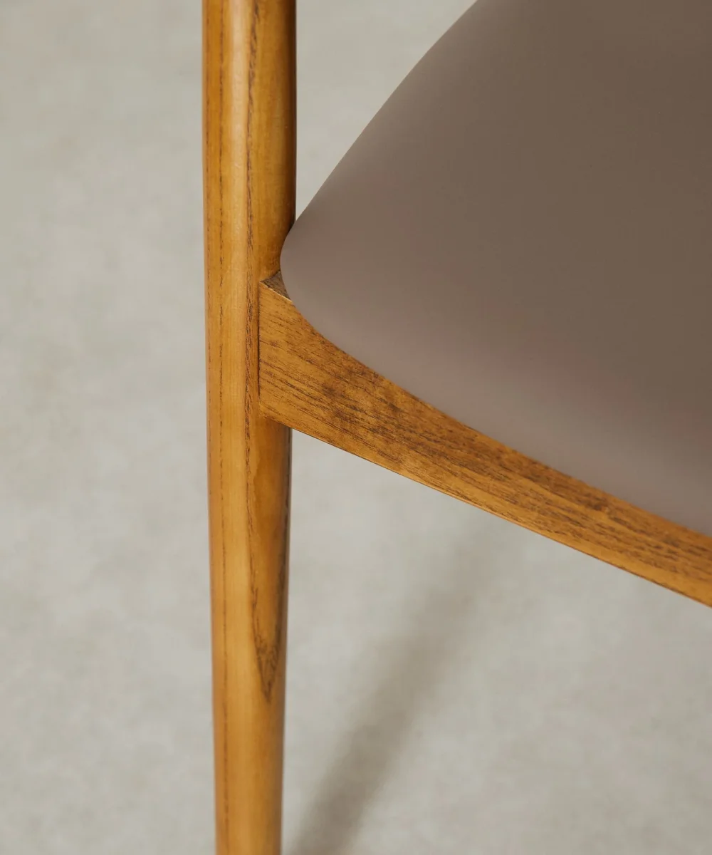 Ideal para crear espacios cálidos y acogedores gracias a su estructura de madera de fresno y asiento tapizado en polipiel.