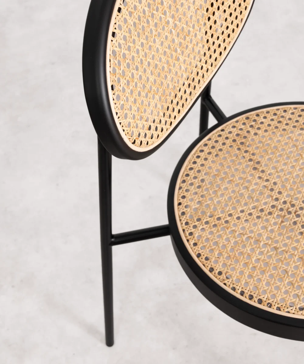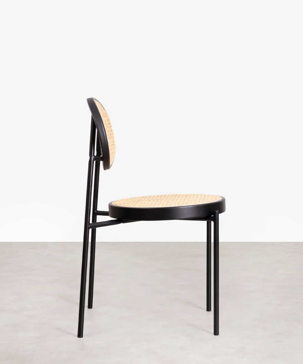 La silla Lora es una fusión perfecta entre estilo y confort. Con su asiento y respaldo de ratán natural, reposabrazos de madera de haya y una resistente estructura de metal cromado, esta silla añade un toque de elegancia natural a cualquier espacio.