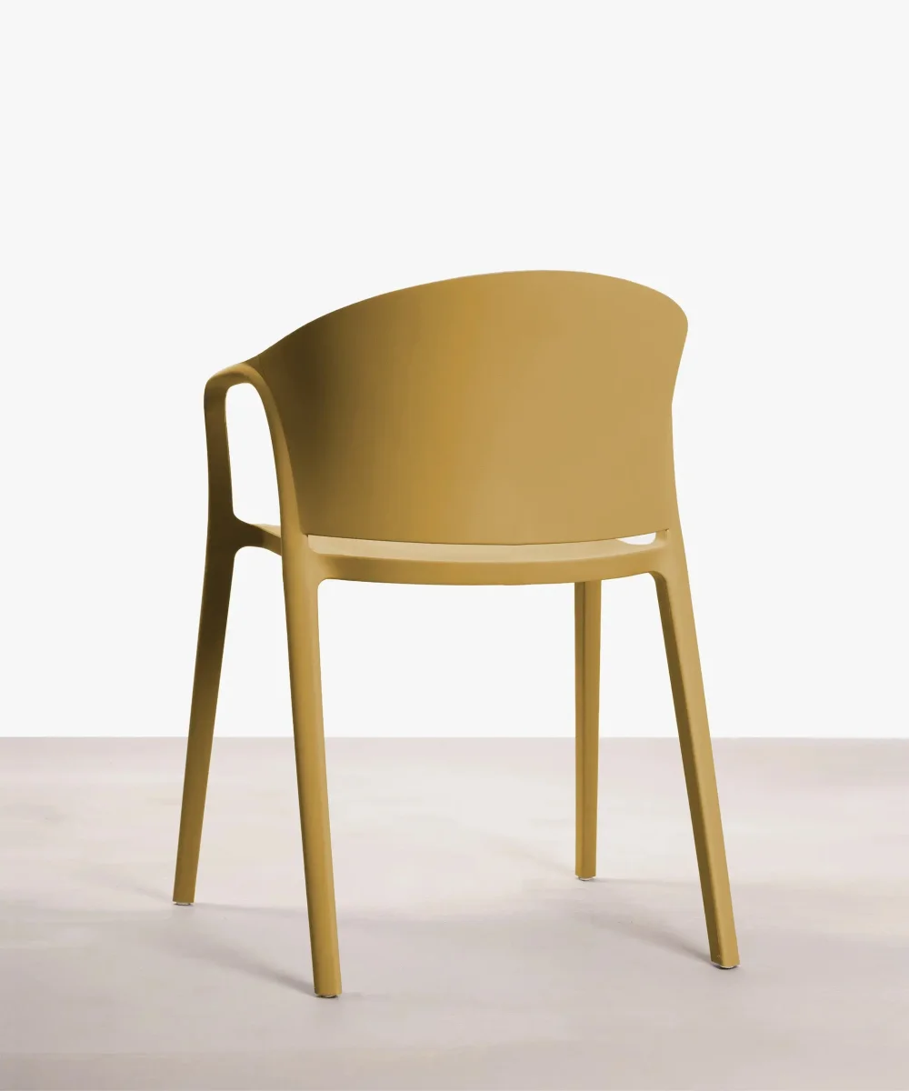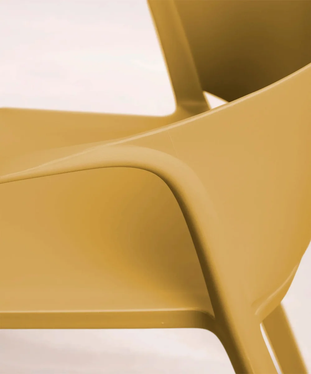 Pippa es una silla resistente, fabricada en plástico polipropileno de alta calidad. Este material la convierte en una silla ideal para el día a día y uso en comedores y salones o jardines, ya que es de fácil mantenimiento y limpieza.