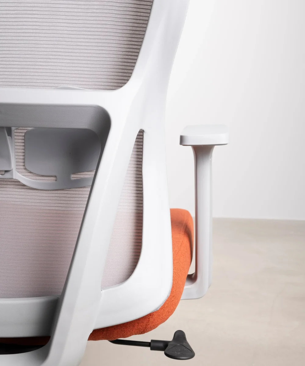 Combina una sólida estructura fabricada en polipropileno de alta calidad con un suave respaldo de malla de poliéster y un cómodo asiento de tela. Silla de escritorio ergonómica con soporte lumbar para una correcta postura.