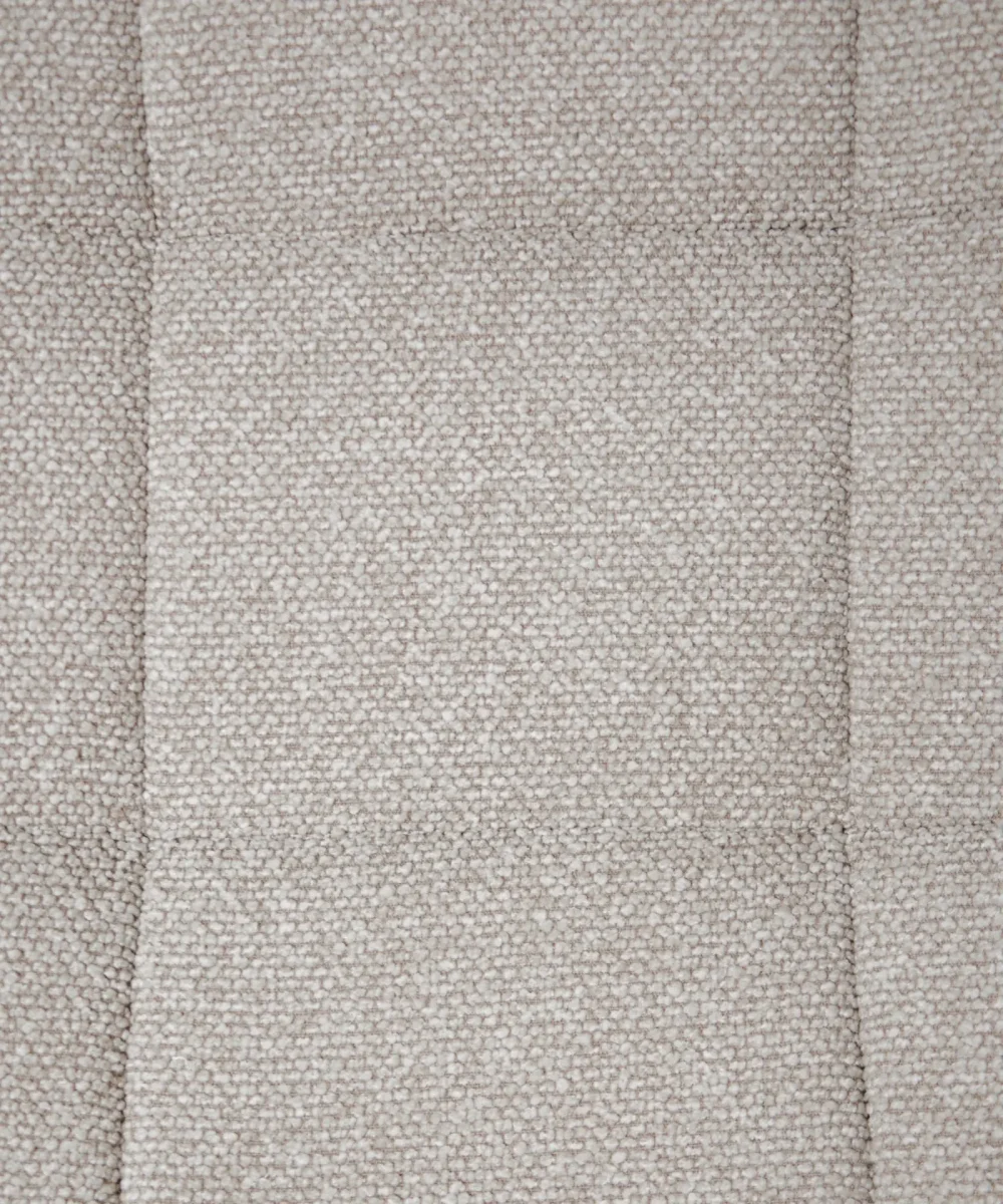 El tapizado en tejido bouclé aporta una estética serena y atemporal, ideal para interiores contemporáneos o escandinavos. Destaca su diseño capitoné con costuras decorativas, que aportan un toque de sofisticación.