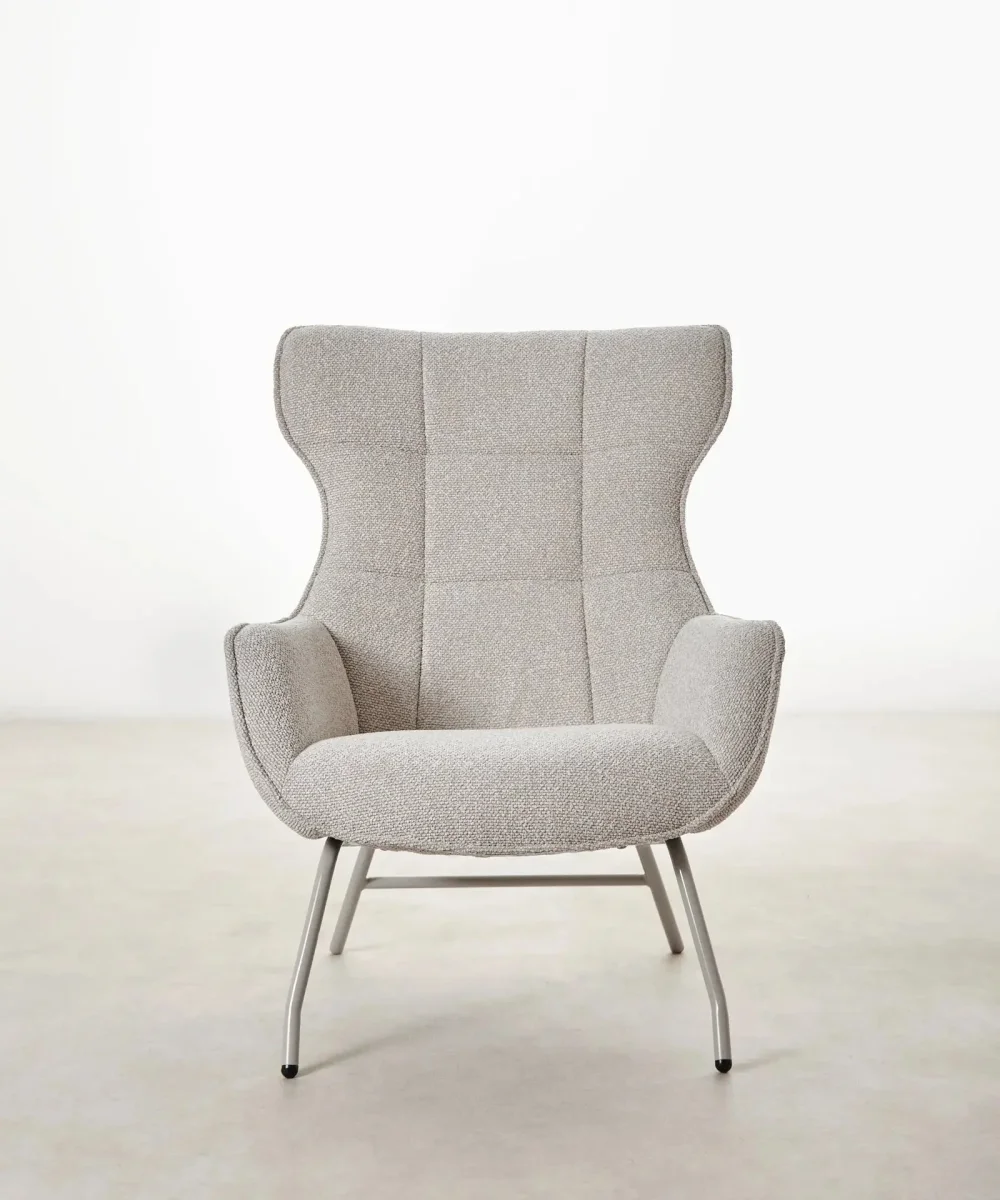 La base metálica en acabado mate le añade estabilidad y ligereza visual. El sillón Elska es perfecto para salones, dormitorios o espacios de lectura donde se busque crear un ambiente relajado con un toque de estilo.