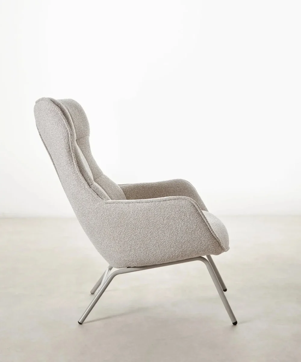 La base metálica en acabado mate le añade estabilidad y ligereza visual. El sillón Elska es perfecto para salones, dormitorios o espacios de lectura donde se busque crear un ambiente relajado con un toque de estilo.