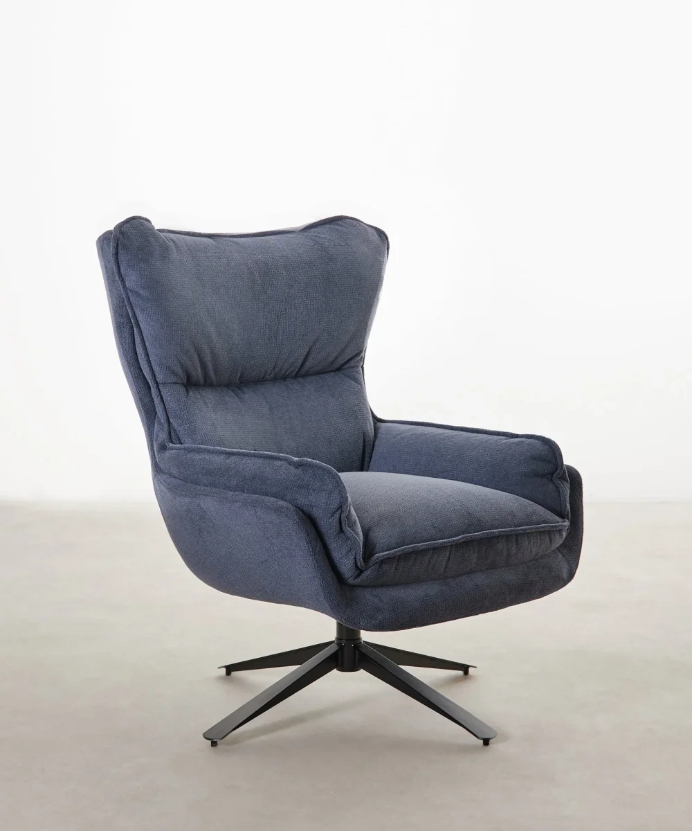 Su base metálica giratoria en negro mate aporta estabilidad y un toque moderno al conjunto. El sillón Trosten es perfecto para quienes buscan confort sin renunciar a un diseño acogedor y fácil de integrar en cualquier estilo de decoración.