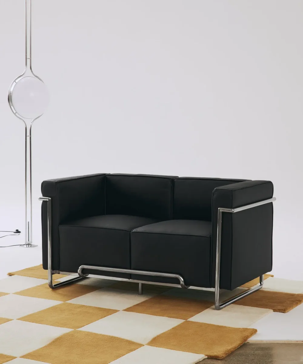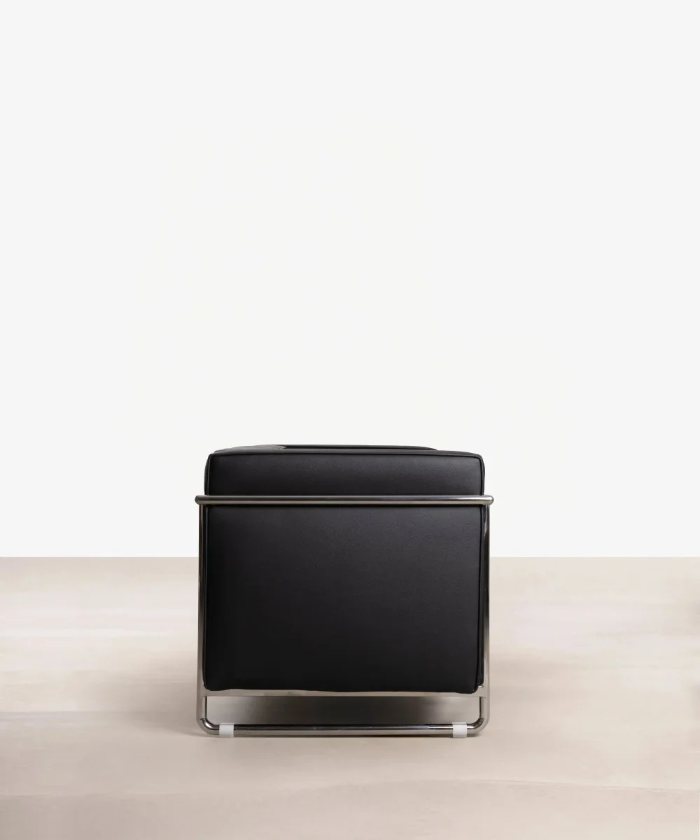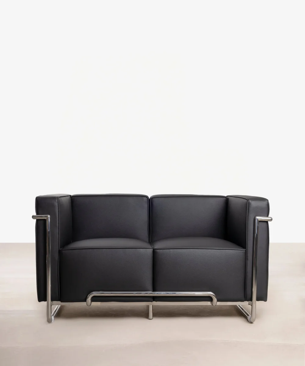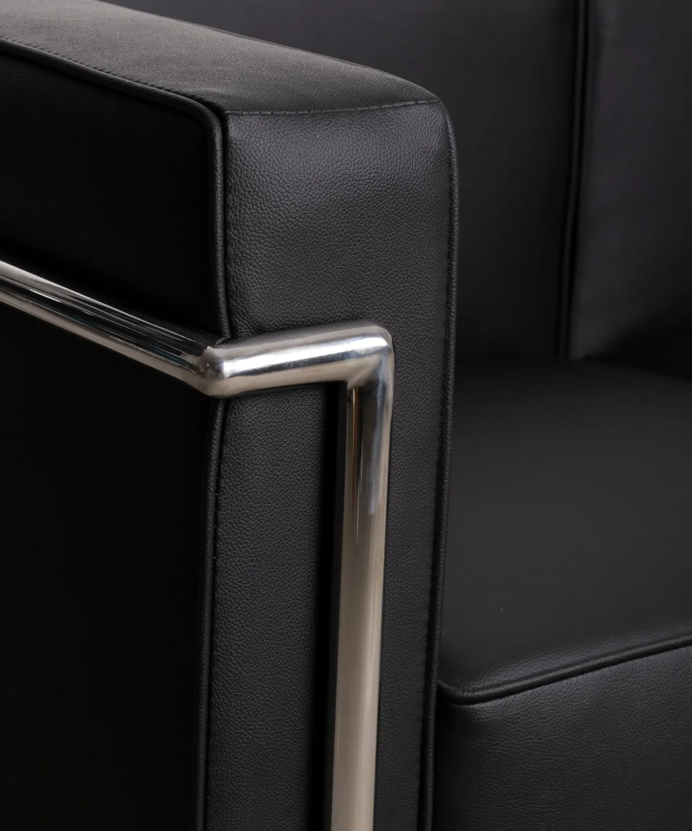 Está fabricado con una estructura tubular de acero inoxidable que sobresale de la base, consiguiendo un sofá moderno y con estilo gracias a sus líneas simétricas.
